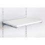 Regal aus Möbelplatten für das Soti-Line System, 60,7x30cm oder 90,7x30cm. Regal aus 18 mm starker Platte mit PCV-Kante. Geeignet für die Präsentation verschiedener Waren. Das Regal wird auf verchromten Stahlwinkeln getragen. Das Regal kann mit den Stützen fest verschraubt werden, damit es nicht von den Stützen rutscht. Das Display kann für Abwechslung sorgen, indem es die neuesten Produkte präsentiert.