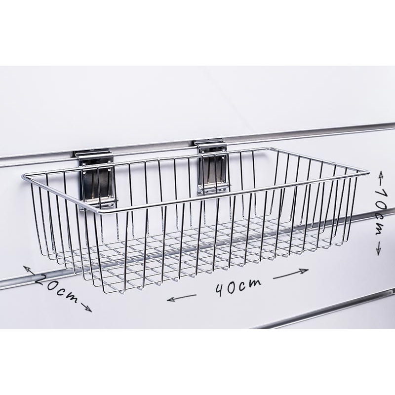 Spacewall-Korb aus verchromtem Stahl.
